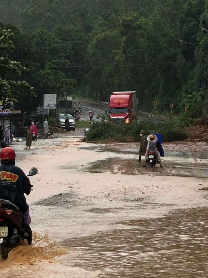 Theo Trung tá Phan Đình Điểm, do mưa lớn kéo dài trong những ngày qua nên QL 1D, đoạn qua địa bàn phường Ghềnh Ráng, thường xuyên xảy ra sạt lở đất, đá. Tuy nhiên, rất may là các vụ việc này chưa gây thiệt hại về người.