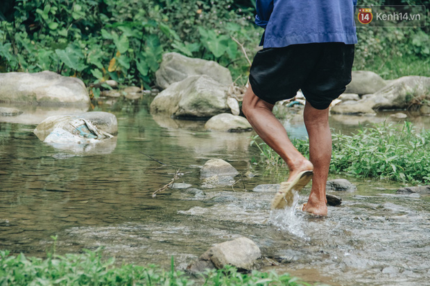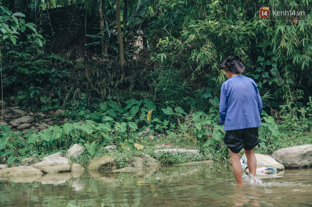 Bà Ba đưa chúng tôi đến thăm căn nhà của chị Hai nằm phía sau con suối dưới chân đồi không có đường vào, mỗi khi muốn qua thăm chị Hai thì phải lội qua con suối trơn trượt quanh năm nước chảy. Thấy người lạ đến, chị Hoa ngó ngó rồi chạy tót lên đồi trốn mất tăm.