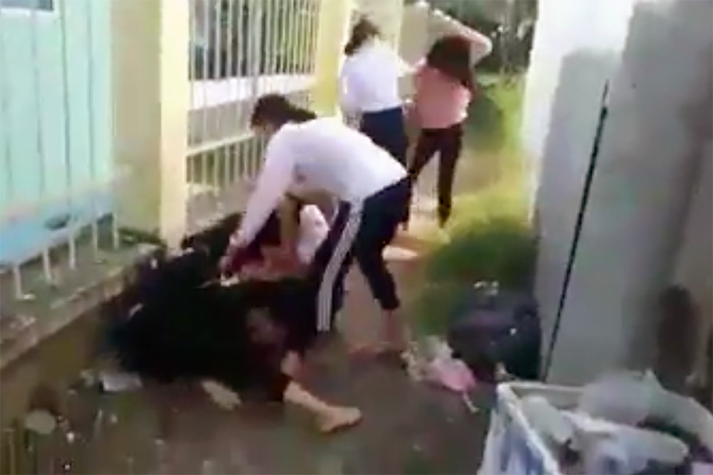 Ngày 31/10, trên mạng xã hội xuất hiện đoạn clip ghi lại cảnh 4 em học sinh bị 2 nữ sinh khác đánh túi bụi. Theo đoạn clip ghi lại, 2 nữ sinh mặc đồ thể dục lao vào nắm đầu, giật tóc và đánh liên tục vào 4 em mặc đồng phục học sinh khiến các em ngã khụy xuống đất. Vừa đánh, các nữ sinh này vừa chửi thề. Ngoài ra đoạn clip còn có tiếng một số học sinh nam.