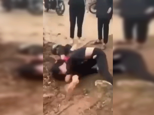 Trước đó, trên mạng xã hội xuất hiện clip 2 nữ sinh đang vật lộn, đánh nhau bên đường trước sự chứng kiến của nhiều học sinh khác. Tuy nhiên, những học sinh này chỉ đứng nhìn, không can ngăn. 5 phút sau, một người phụ nữ xuất hiện can ngăn và tách 2 nữ sinh này ra.