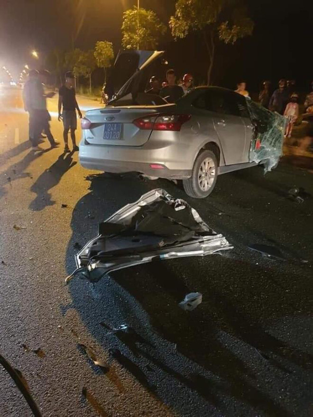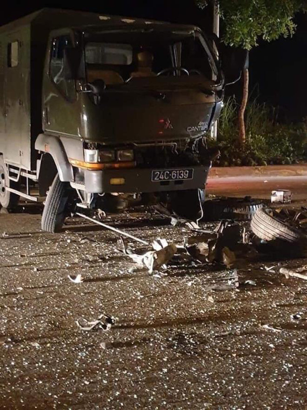 Tại hiện trường, xe ô tô con hiệu Ford Focus, mang BKS 24A-001.20 và xe ô tô tải hiệu Mitsubishi Fuso Canter BKS 24C-6139 sau va chạm đều bị xoay ngang đường và cùng hư hỏng nặng phần đầu.