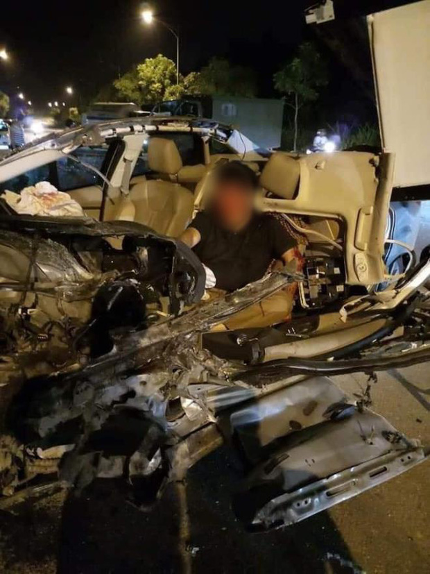 Ngoài ra, xe con còn bị bung toàn bộ phần nóc, người điều khiển ngồi trong bị thương nặng, được đưa đi cấp cứu ngay sau đó.