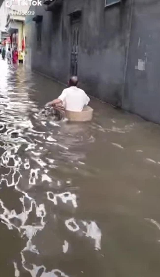 27/08/2021 17:08Hải Phòng chìm trong biển nước sau cơn mưa lớn, người dân chèo 'thuyền thúng' ra đường