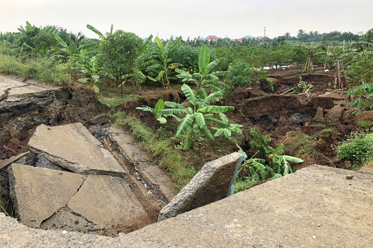 Ngày 30/10, ông Nguyễn Văn Chí – Chủ tịch UBND xã An Sơn, huyện Thủy Nguyên (Hải Phòng) - cho biết tại cánh đồng sản xuất nông nghiệp của người dân thôn 9 xuất hiện một hố sụt lún đất rộng hàng trăm mét vuông, cuốn theo nhiều cây ăn quả của một hộ gia đình và đánh sập đường bê tông liên thôn.