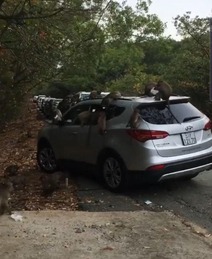 Ngày 21-4, trên trang mạng xã hội xuất hiện một đoạn video gần 2 phút, ghi lại hình ảnh hàng chục chú khỉ ở Khu du lịch Đảo Khỉ Cần Giờ chui vào ôtô lấy thức ăn, số khác ngồi trên xe phá phách.