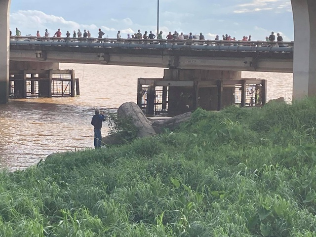 11/08/2020 16:31Hàng chục người tụ tập trên cầu xem vớt thi thể trôi sông