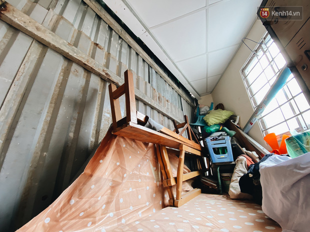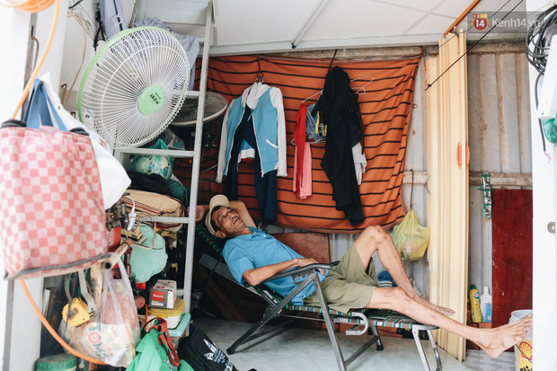 Theo chú Hậu, căn nhà chú chỉ 5,4m2 nhưng có được gác lửng, khi ngủ chỉ nằm nghiêng vì nhà chật. Chú đặt cái ghế xếp ngả lưng nghỉ ngơi đã chiếm hết không gian căn nhà nên đi lại cũng khó khăn.