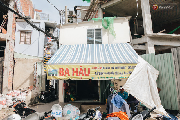 "Nhà tôi trước đó có 3 mặt tiền với 70m2, bị giải toả còn 5,4m2, thấy vẫn còn ở được nên vợ chồng tôi cải tạo lại sinh sống. Hơn nữa do buôn bán và sửa chữa quạt điện có mối ở đây nên cũng không muốn rời đi. Tuy ở chật chội chút nhưng có mặt đường rộng rãi để làm ăn nên cũng không sao", chú Hậu chia sẻ.
