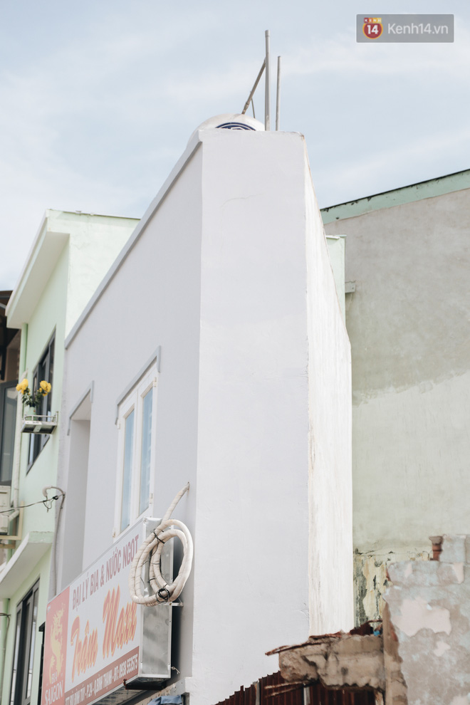 Cách nhà chú Hậu hơn 100m là căn nhà hình tam giác được cho là của chủ nhà tên Châu với diện tích khoảng 4m2. Hiện căn nhà này đang được một người khác thuê để bán nước sau khi đã cải tạo lại. Người thuê cho biết, thuê để chứa hàng hoá buôn bán chứ không ngủ lại vì nhà quá chật.