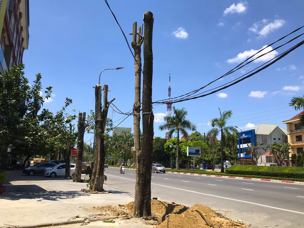 Ghi nhận của PV, số cây xanh bị cắt trụi này gồm nhiều loại cây như xoài, ngô đồng, hoa sữa. Những cây này có tuổi đời hàng chục năm với đường kính lớn từ 25-50cm. Qua quan sát cho thấy, những cây xanh này đang khỏe mạnh, cao lớn và không có dấu hiệu của sự hư hỏng hay mục thân.