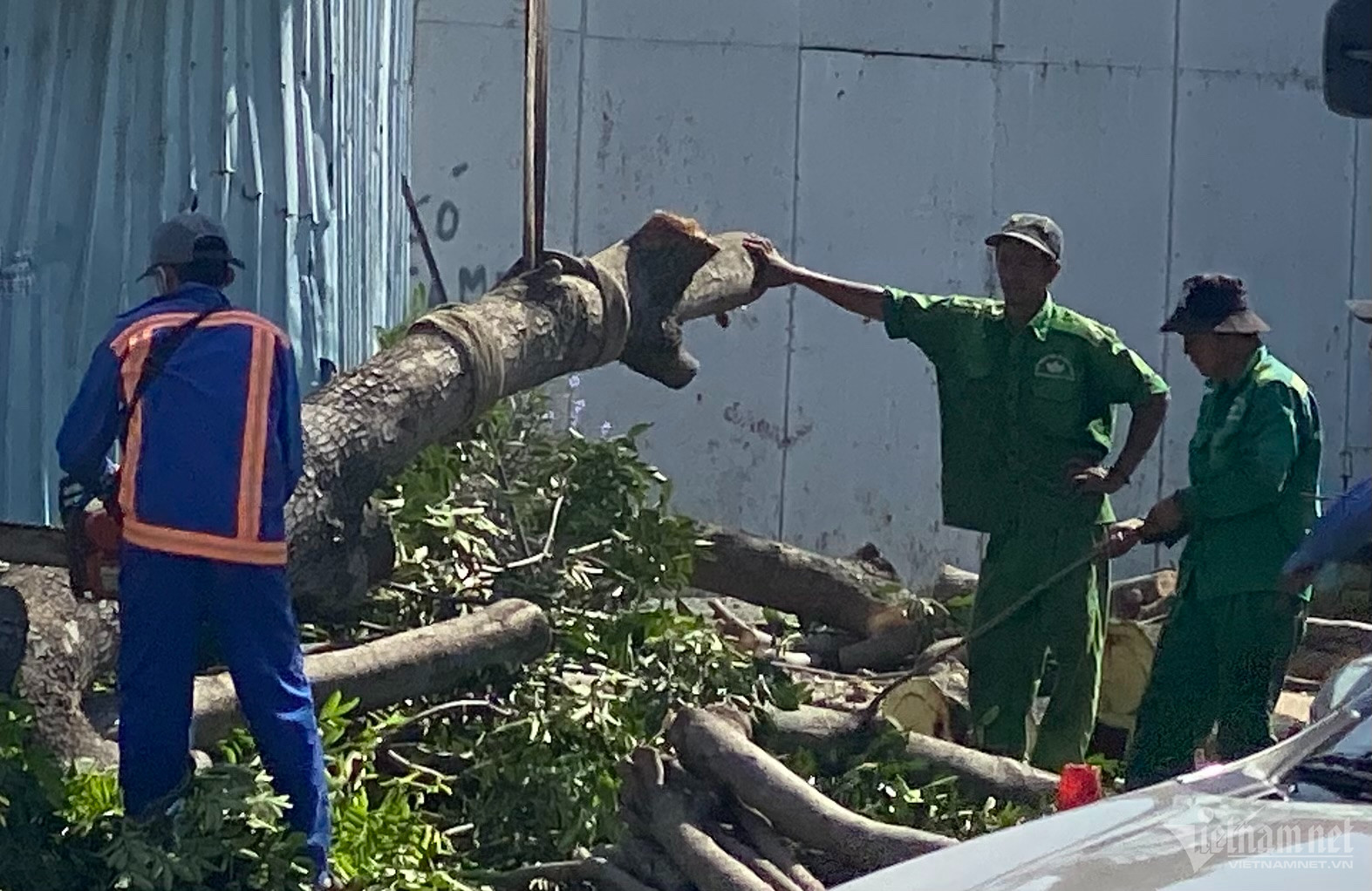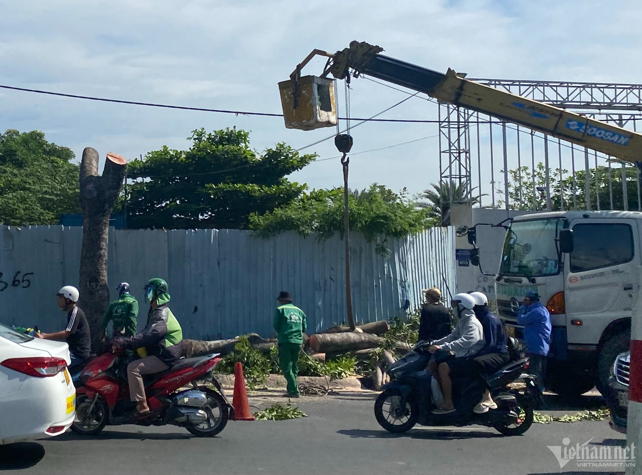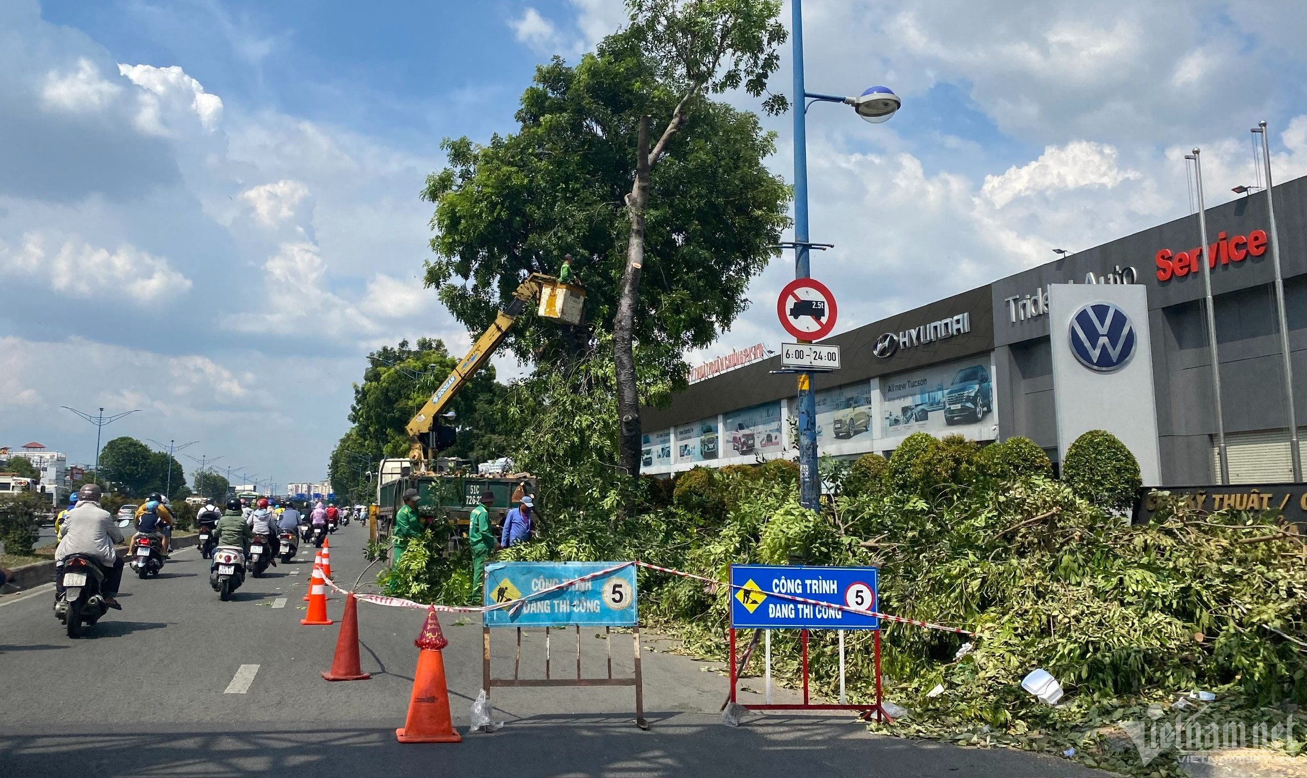 Ngày 12/11, ghi nhận của VietNamNet, hướng từ trung tâm ra cửa ngõ Tây Bắc TP.HCM, nhân viên công ty cây xanh tất bật mé nhánh, đốn hạ hàng loạt cổ thụ dọc đường Trường Chinh, đoạn từ mũi tàu Cộng Hòa về giao lộ Phạm Văn Bạch (quận Tân Bình).