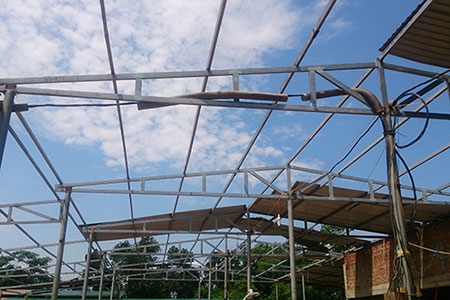 Nhà xưởng chế biến lâm sản ở xã Trung Sơn bị tốc mái. Ảnh: Hoàng Táo |
