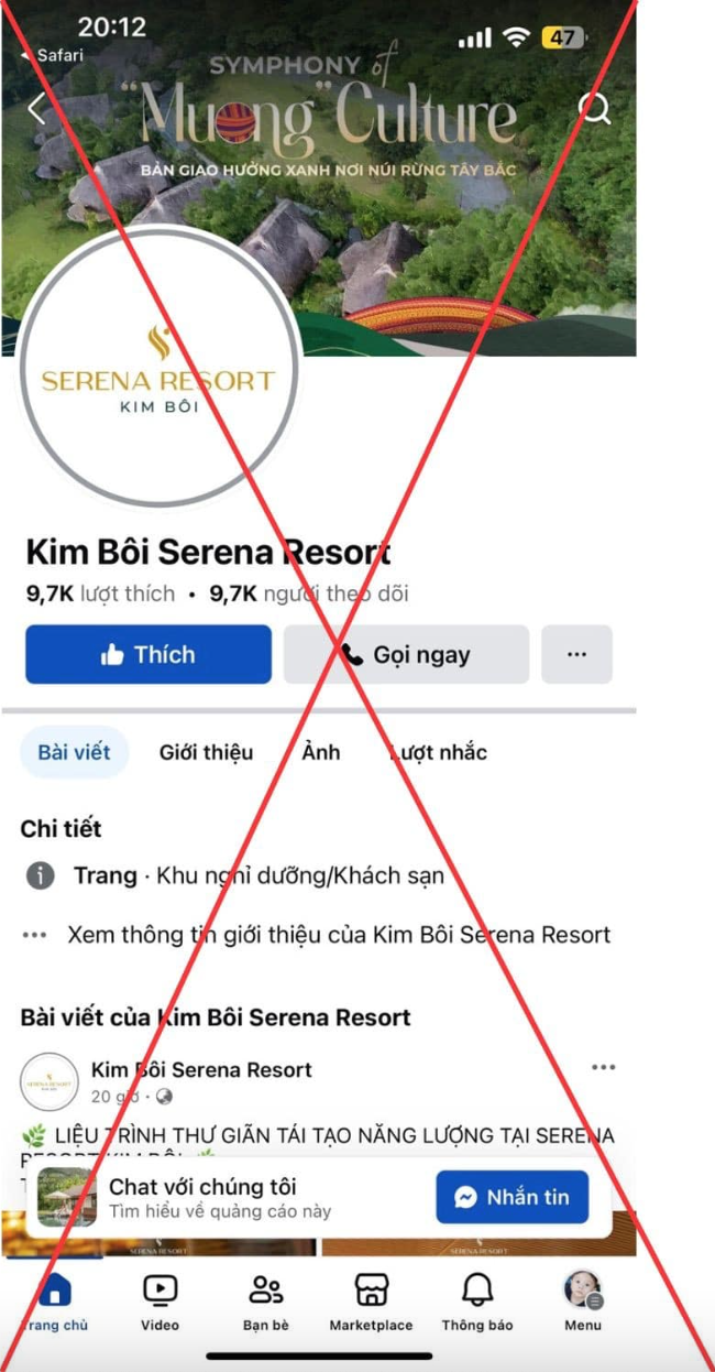 Là một trong những khu du lịch xảy ra trường hợp bị giả mạo và có không ít khách hàng bị lừa, đại diện của Serena Resort Kim Bôi - Bà Nguyễn Thị Thanh Bình (Phó Tổng quản lý Khu nghỉ dưỡng Serena Resort Kim Bôi) cho biết: "Việc mạo danh, sử dụng trái phép hình ảnh, thông tin của khu du lịch để thực hiện các hành vi lừa đảo, giả mạo, trục lợi là hành vi vi phạm luật, xâm phạm quyền sở hữu trí tuệ và giả mạo trang thông tin điện tử của tổ chức, cá nhân khác. Hành vi này không chỉ gây tổn thất nghiêm trọng cho uy tín, hình ảnh của Khu nghỉ dưỡng Serena Resort Kim Bôi chúng tôi mà còn gây thiệt hại nặng nề và làm mất niềm tin của khách hàng. Ngay sau khi tiếp nhận phản ánh của khách hàng chúng tôi đã làm việc với cơ quan chức năng, thực hiện cảnh báo liên tục trên các kênh truyền thông của khu du lịch. Để bảo đảm sự nghiêm minh của pháp luật, chúng tôi mong các cơ quan chức năng cùng quyết liệt vào cuộc để xử lý nghiêm minh hành vi lừa đảo này theo đúng các quy định của pháp luật".