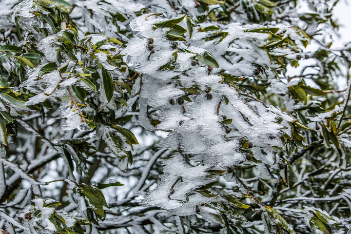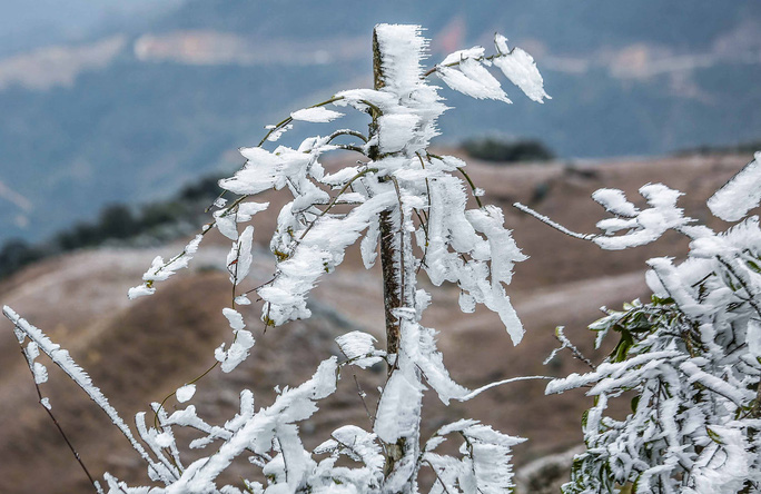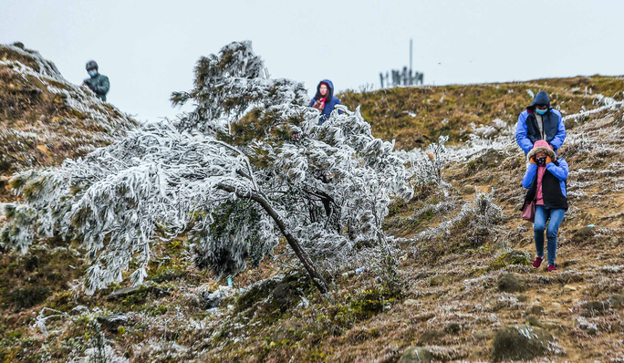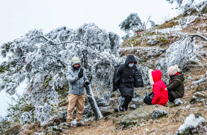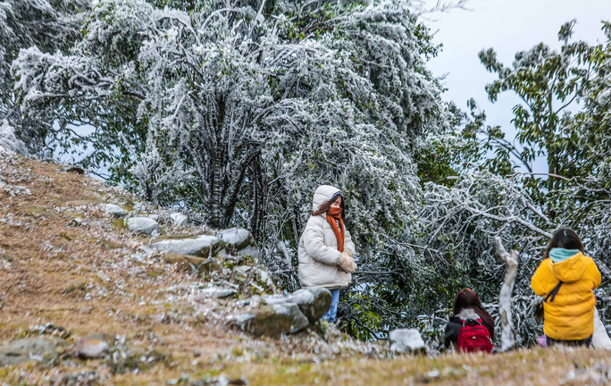 Những ngày này, nhiệt độ càng xuống thấp bao nhiêu càng nhiều du khách đến đây để chiêm ngưỡng những tảng băng nhỏ được dính trên những lá, cành cây.