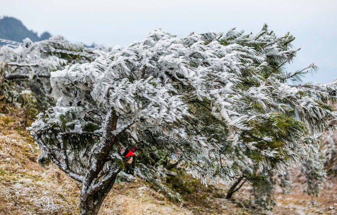 Do ảnh hưởng của đợt không khí lạnh tăng cường, băng tuyết phủ trắng xóa trên các ngọn cỏ cành cây, sương mù bao phủ trên phạm vi rộng hơn 10 km, tầm nhìn chỉ từ 2 đến 3 m...