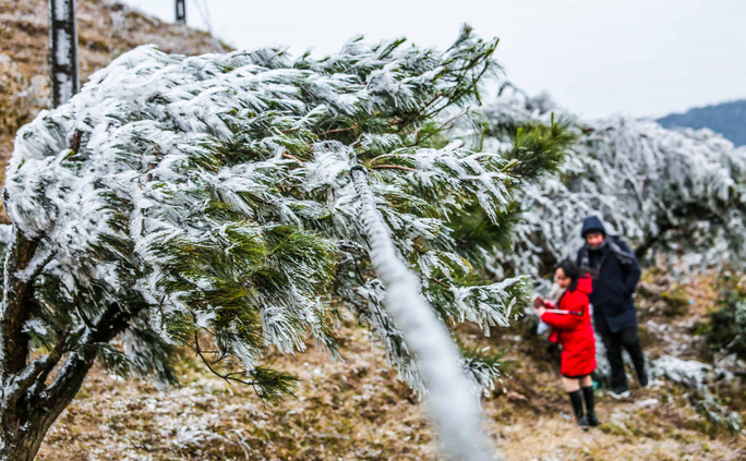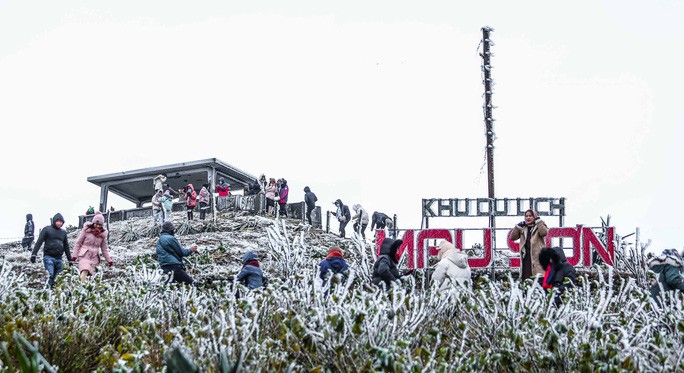 Hàng ngàn du khách bất chấp cái lạnh cắt da cắt thịt với nhiệt độ thấp nhất - 1, -2 độ C kèm theo mưa phùn nhỏ lên khu vực Mẫu Sơn (Lạng Sơn) để ngắm băng tuyết.