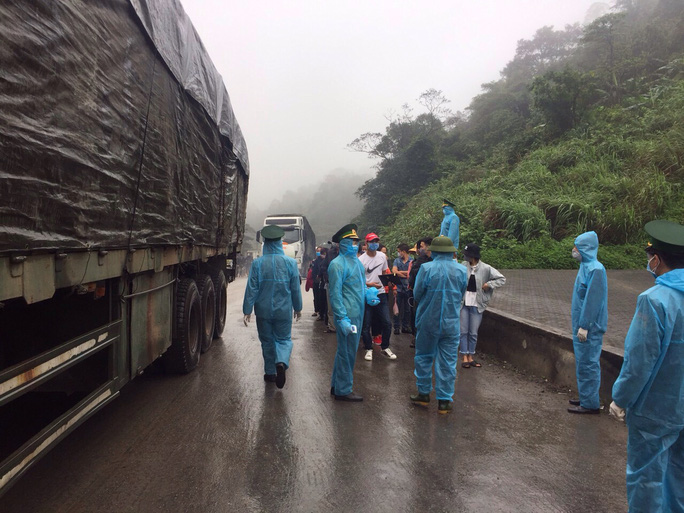Để hạn chế tối đa tình trạng lây nhiễm có thể xảy ra trong quá trình chờ phân loại, cách ly, lực lượng chức năng đã yêu cầu tất cả người dân phải đeo khẩu trang, đồng thời tận dụng bãi chờ ở cửa khẩu, đoàn người nào về thì cho dừng lại tại khu vực này để tổ chức phun tiêu độc khử trùng, phát tờ khai y tế.