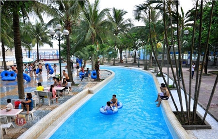 | Phía trong công viên nước, người sử dụng dịch vụ vui chơi miễn phí cũng không đông.  |