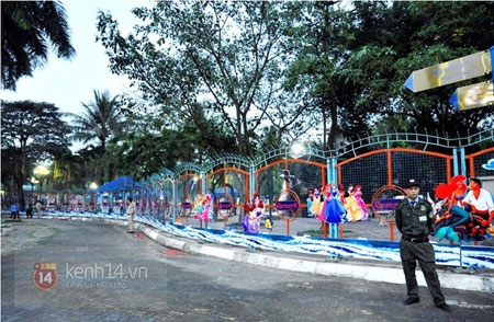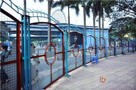 | Có vẻ như, rút kinh nghiệm từ ngày đầu, phía trước khu vực hàng rào sắt hôm nay, các nhân viên bảo vệ đứng khá dày, cách vài mét lại có bảo vệ đứng và không rời vị trí dù lượng người đến công viên vui chơi rất ít.  |
