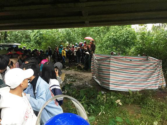 Có mặt tại hiện trường, thi thể nữ sinh Tr. được vây bạt để lực lượng chức năng tiến hành khám nghiệm. Rất đông người dân có mặt tại đây bật khóc thương tiếc cho cô gái xấu số.