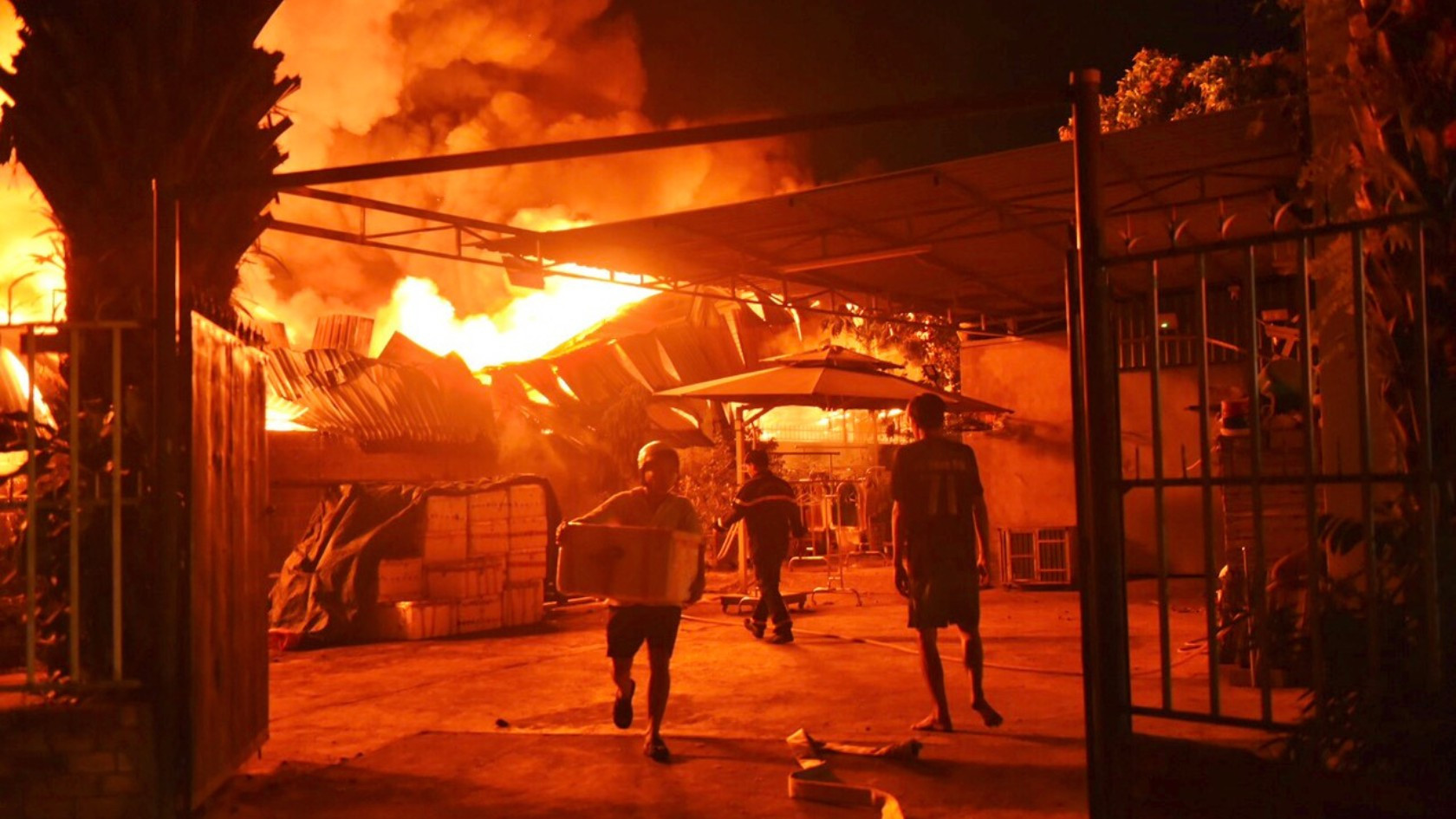 Ngay sau đó, mọi người hô hoán nhau chữa cháy, di dời tài sản khỏi kho hàng, đồng thời thông báo cho lực lượng chức năng đến hỗ trợ.