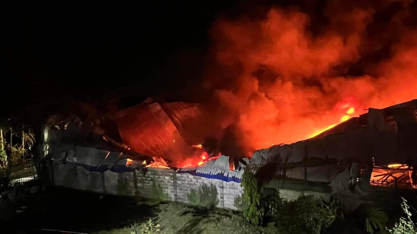 Do trong kho chứa nhiều vật dụng dễ cháy nên ngọn lửa nhanh chóng lan rộng. Tại hiện trường, cột khói lửa bốc cao hàng chục mét, bao phủ cả một vùng rộng lớn. Một phần mái và khung nhà bị đổ sập, lực lượng chức năng phải đục tường tiếp cận hiện trường vụ cháy.