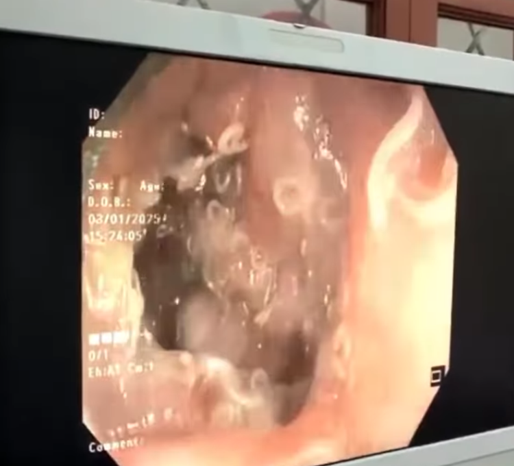 Qua nội soi, các chuyên gia phát hiện hàng trăm con giun móc đang “trú ngụ” tại thành tá tràng của người bệnh. Nhìn hình ảnh nội soi của bệnh nhân, không ít người đã giật mình.