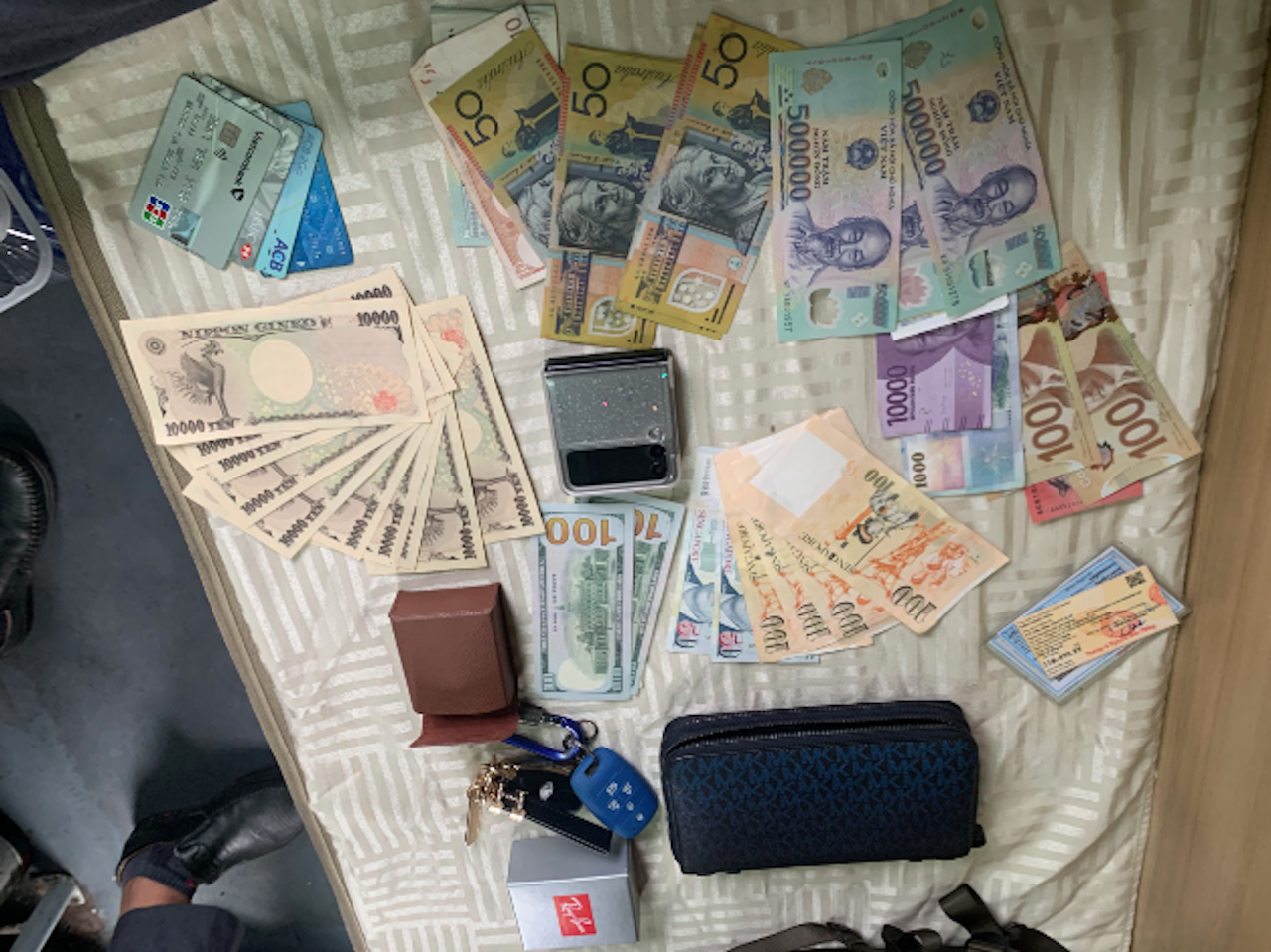 Nhận tin, trưởng tàu cùng nhân viên bảo vệ đến hiện trường kiểm tra, phát hiện bên trong ví có nhiều tiền ngoại tệ (trị giá khoảng 58,5 triệu đồng) và 1,5 triệu đồng; 1 điện thoại, 4 thẻ ATM, giấy tờ tùy thân...