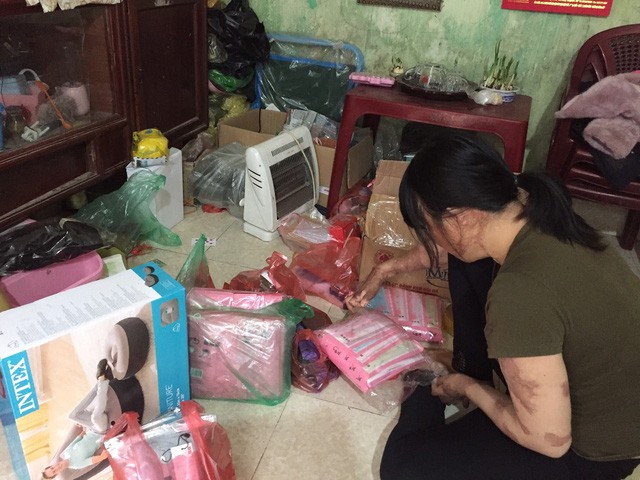Cứ cách một ngày một lần, chị lại để con nhỏ cho mẹ trông nom giúp, xuống quận Hà Đông lấy hàng về bán online. Có khách đặt hàng, chị lại một mình đi giao hàng khắp nơi. Chị chia sẻ thêm, đa số khách hàng đều biết hoàn cảnh của chị, tuy nhiên vẫn có một số khách lạ thường dùng ánh mắt tò mò, sợ sệt khi chị đến giao hàng nên nhiều lúc chị cũng rất tủi thân. Thậm chí bây giờ, mỗi khi ra khỏi nhà chị vẫn phải mặc quần áo kín mít, đeo khẩu trang để tránh sự khó xử cho mình và mọi người.