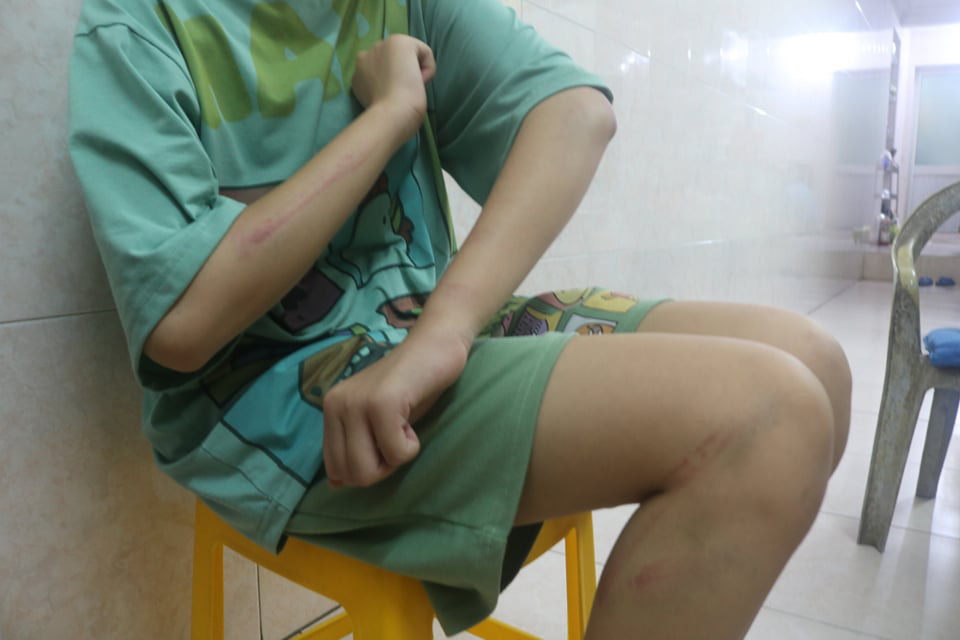Rồi bố lấy dây điện, quấn băng dính bên ngoài, bắt cháu nằm xuống để vụt, cháu chống cự, bị bố quất cả vào tay chân đau rát, cháu khóc hỏi bố, tại sao đánh con, bố càng đánh nhiều hơn” - Bé L.P.A chia sẻ.