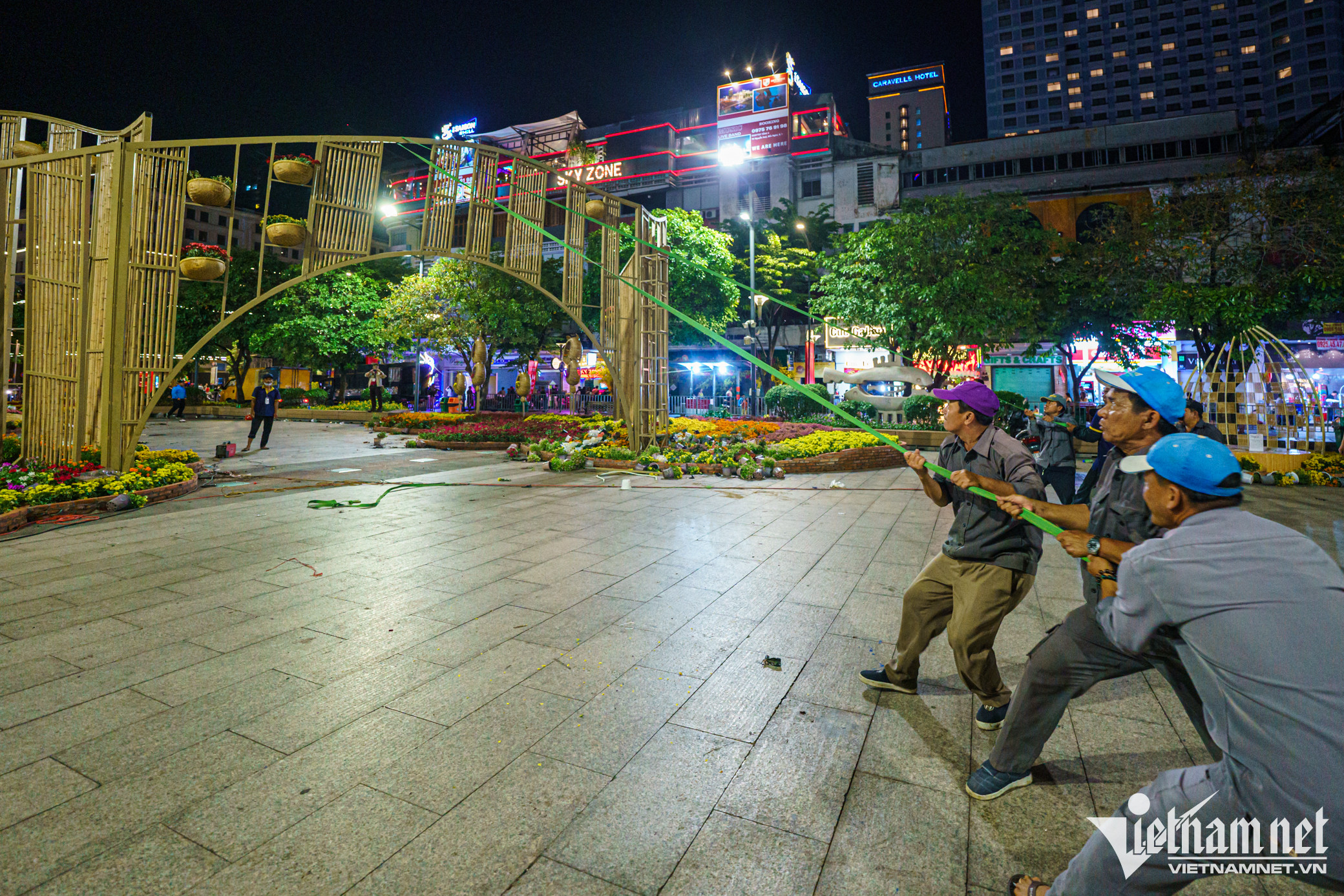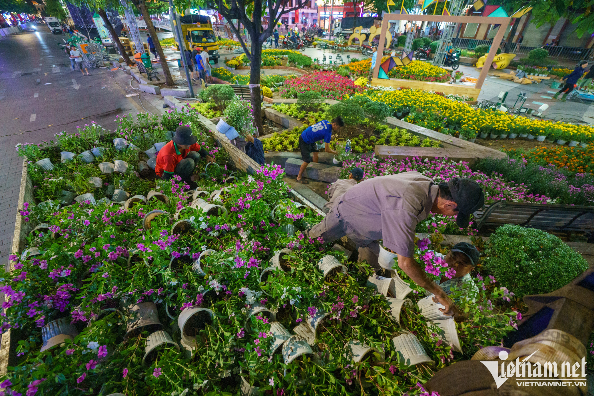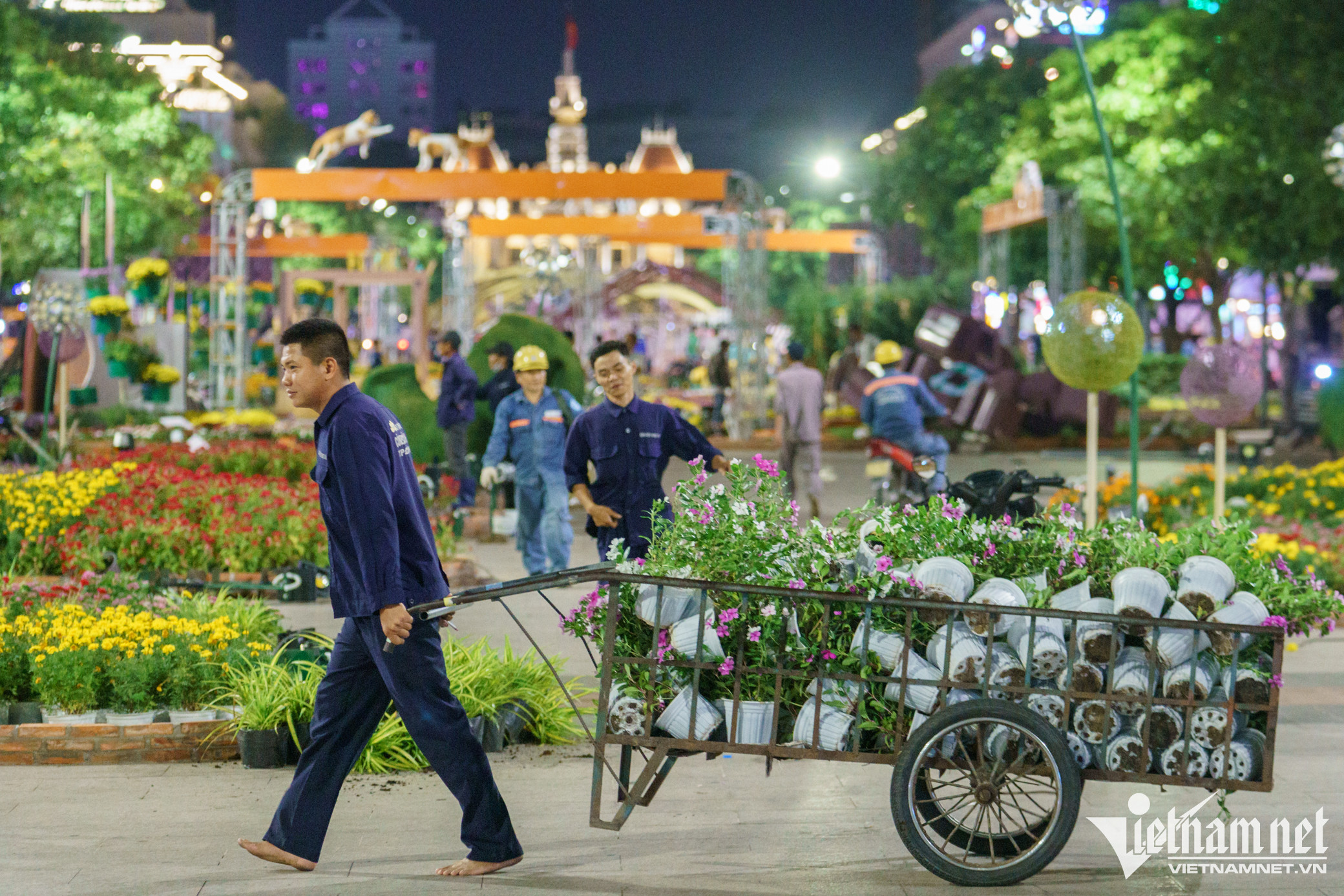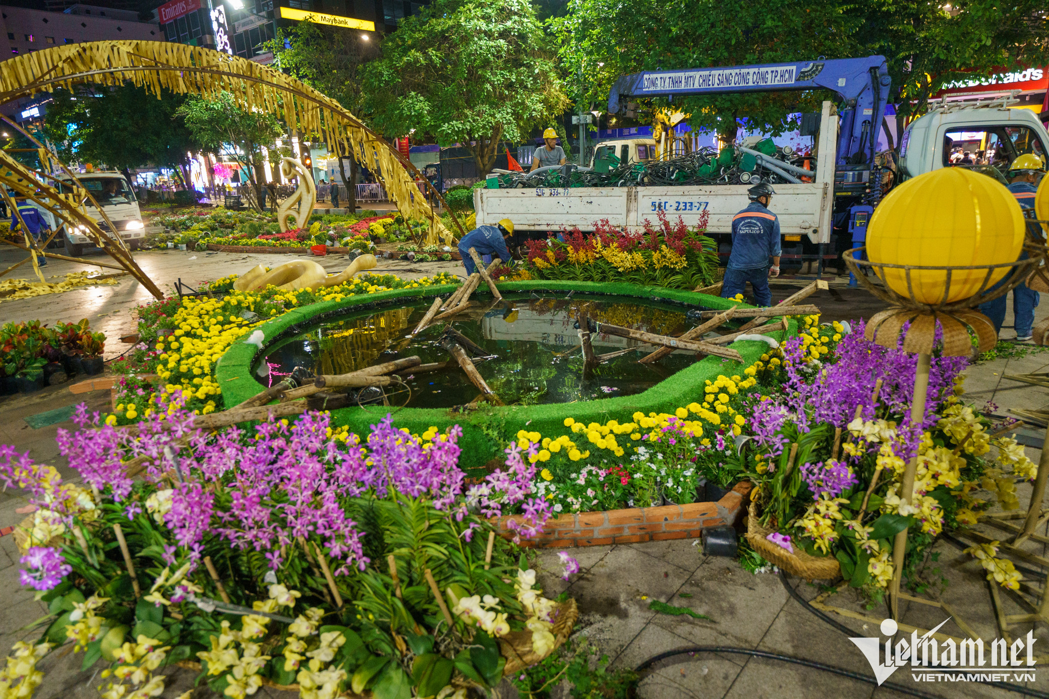 Hơn 300 công nhân trắng đêm thu dọn hoa, tiểu cảnh, linh vật ở Đường hoa Nguyễn Huệ để trả lại mặt bằng cho phố đi bộ lớn nhất TP.HCM sau kỳ nghỉ Tết Nguyên đán.
