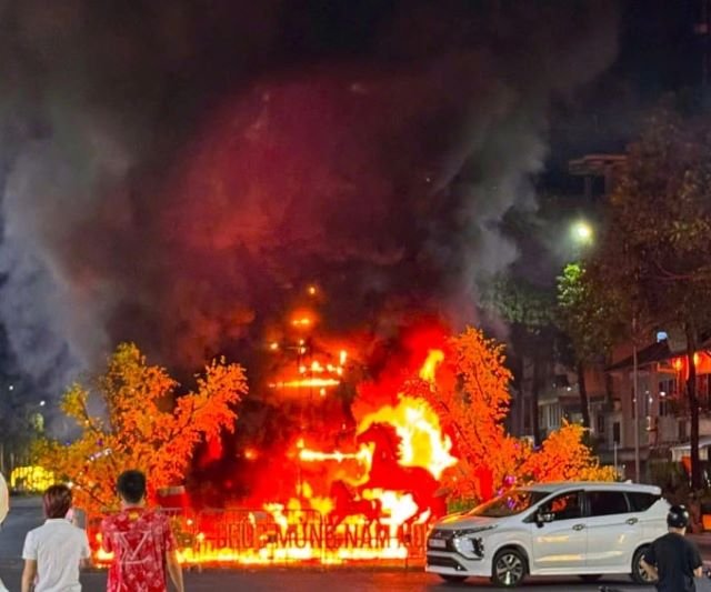 Theo VnExpress, sự cố xảy ra vào khoảng 23h đêm ngày 5/2 tại phường Hà Tiên, TP Hà Tiên. Ngọn lửa bất ngờ khởi phát từ khu vực tiểu cảnh phục vụ Tết Nguyên đán, nhanh chóng lan rộng và tạo thành cột khói đen kịt cao hàng chục mét.