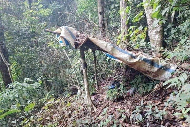 Thông tin cho biết, trong quá trình tuần tra tại tiểu khu 1808 – khu vực giáp ranh giữa xã Tà Đùng và xã Đam Rông 2, tổ quản lý, bảo vệ rừng phát hiện một căn chòi dựng tạm bợ trên hai thân cây, phủ bạt nhựa, nằm trên địa hình đồi dốc hiểm trở.