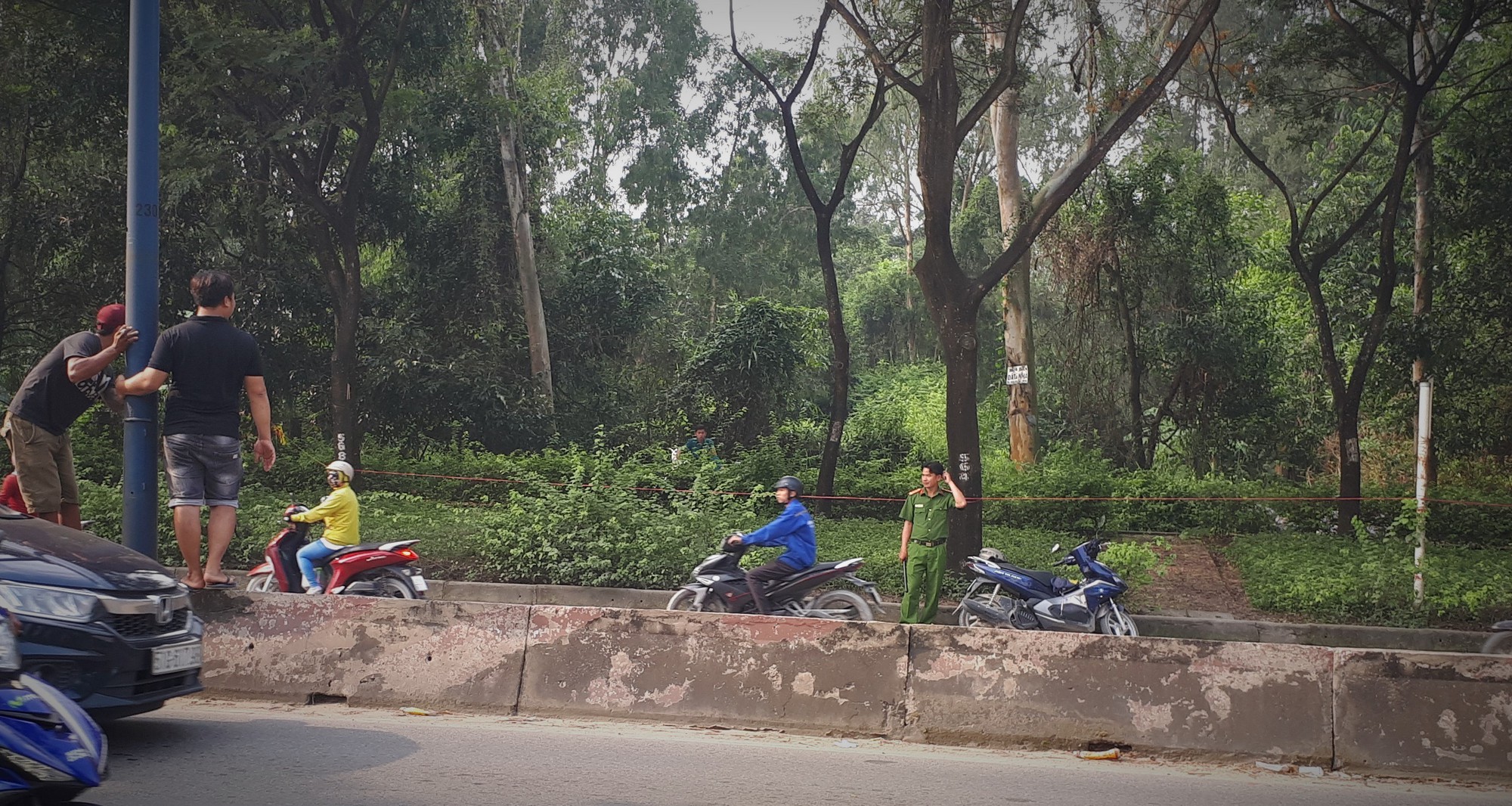 Nhận tin báo, lực lượng chức năng địa phương phối hợp với cơ quan hữu trách huyện Bình Chánh có mặt bảo vệ hiện trường. Ghi nhận tại hiện trường, PV phát hiện, thi thể nạn nhân trong tư thế treo lơ lửng, khuất sau những bụi cây, cách xa mặt đường.