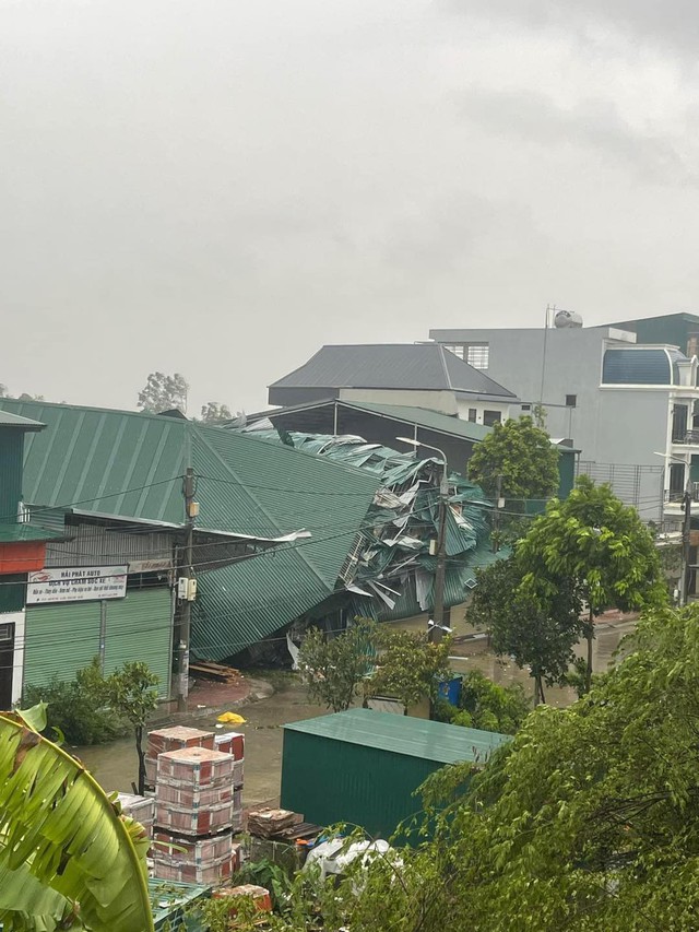 Ngoài căn nhà nói trên, một nhà kho được dựng tạm bằng tông tại khu vực Thanh Xuân Nam (quận Thanh Xuân, Hà Nội) cũng đổ sập vào chiều nay. Gió bão còn quật ngã một ngôi nhà ghép cao 4 tầng ở Thạch Thất (Hà Nội).