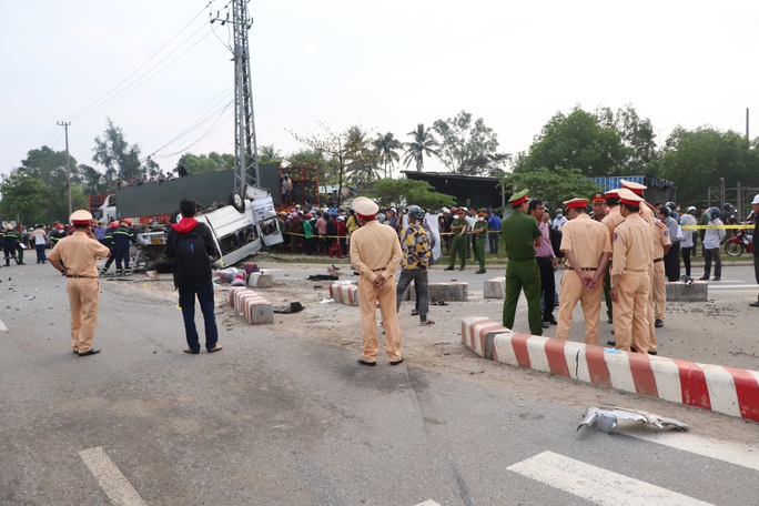 Sáng 14/2, theo ghi nhận của báo Người Lao Động, hàng trăm người hiếu kỳ tập trung theo dõi cơ quan chức năng làm nhiệm vụ tại hiện trường vụ tai nạn đau lòng giữa xe khách và xe đầu kéo xảy ra tại huyện Núi Thành, tỉnh Quảng Nam.