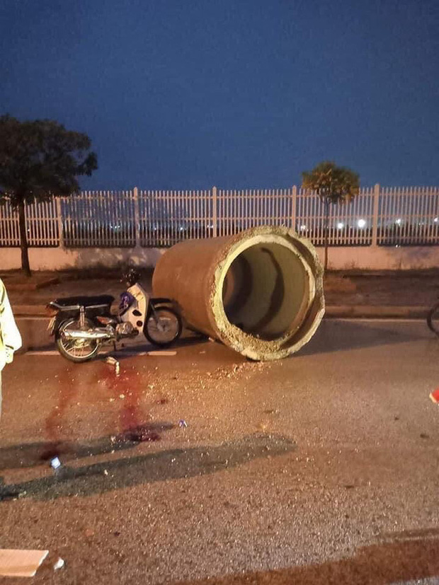 Có thể thấy tai hiện trường vụ tai nạn, chiếc xe máy của nạn nhân vẫn dựng đứng và đâm thẳng vào ống cống giữa đường. Lực lượng chức năng cũng như người dân khu vực xung quanh cũng tập trung khá đông.