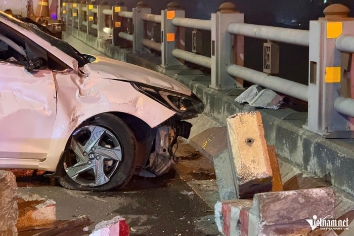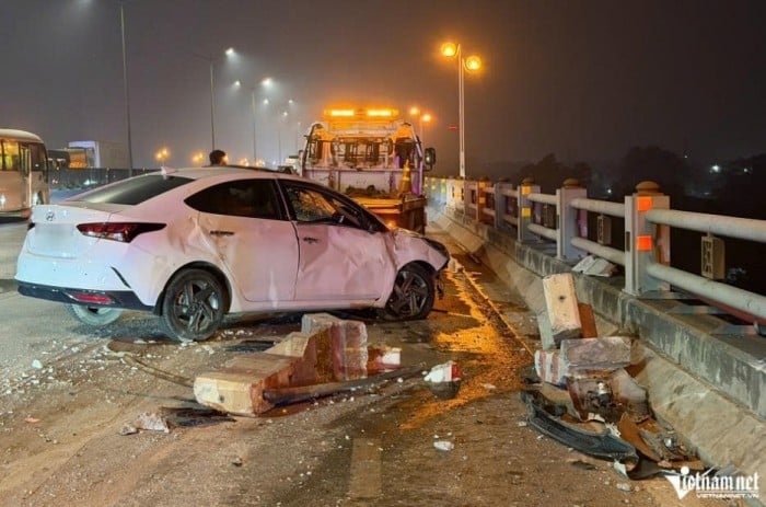 Thời điểm xảy ra sự việc, chiếc ô tô con màu trắng mang BKS 30H-966.XX đang lưu thông theo hướng từ Vành đai 3 đi qua cầu Thanh Trì. Khi di chuyển đến khu vực giữa cầu, phương tiện bất ngờ tông mạnh vào dải phân cách ngăn cách làn ô tô và xe máy.