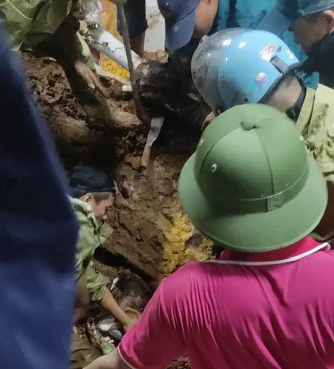 Một số hình ảnh người dân ghi nhận vụ sạt lở làm đổ tường của một gia đình trong lúc mưa, làm 3 cháu nhỏ tử vong.