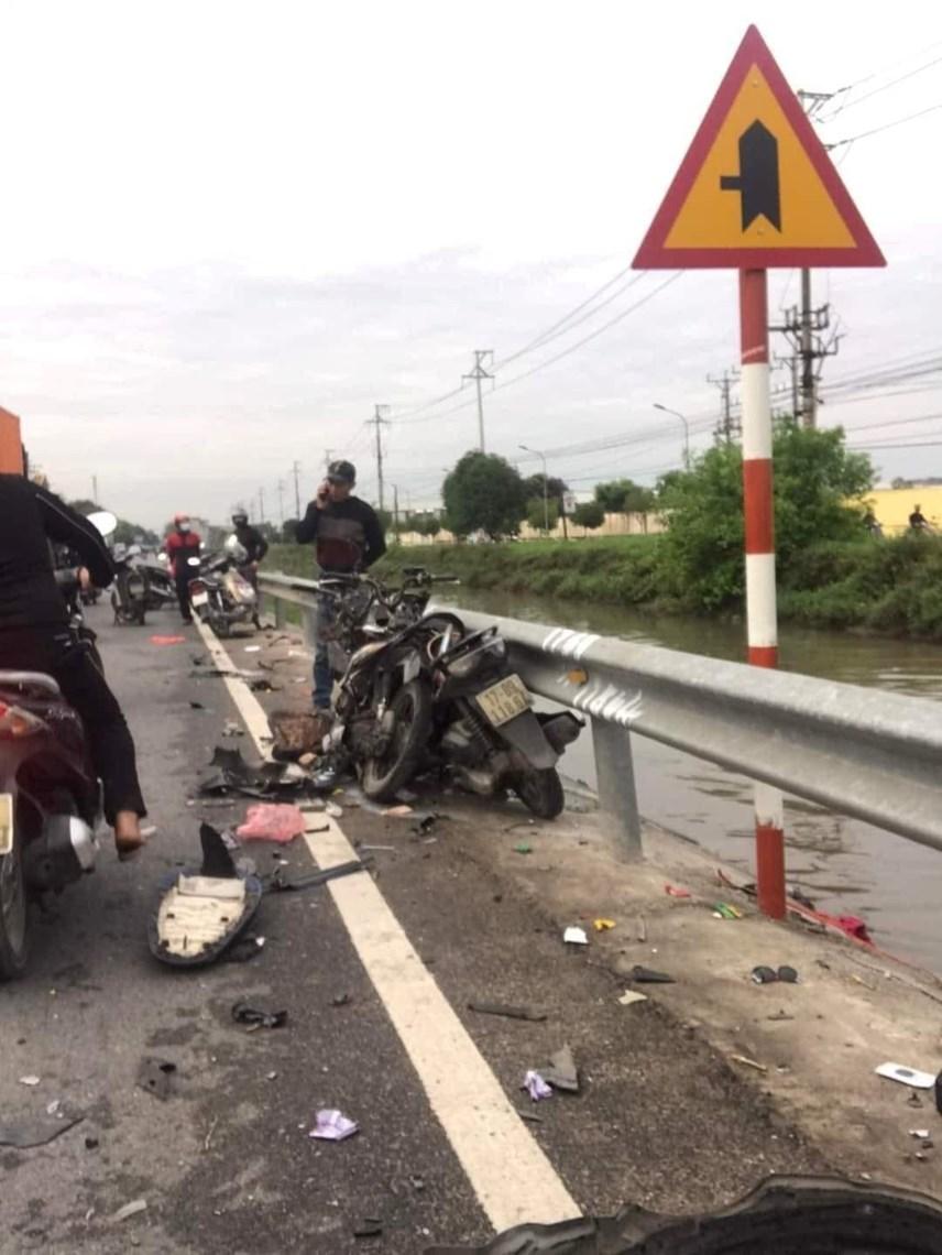 Tại hiện trường, các phương tiện đều bị hư hỏng nặng, biến dạng, mảnh vỡ vương vãi khắp mặt đường.