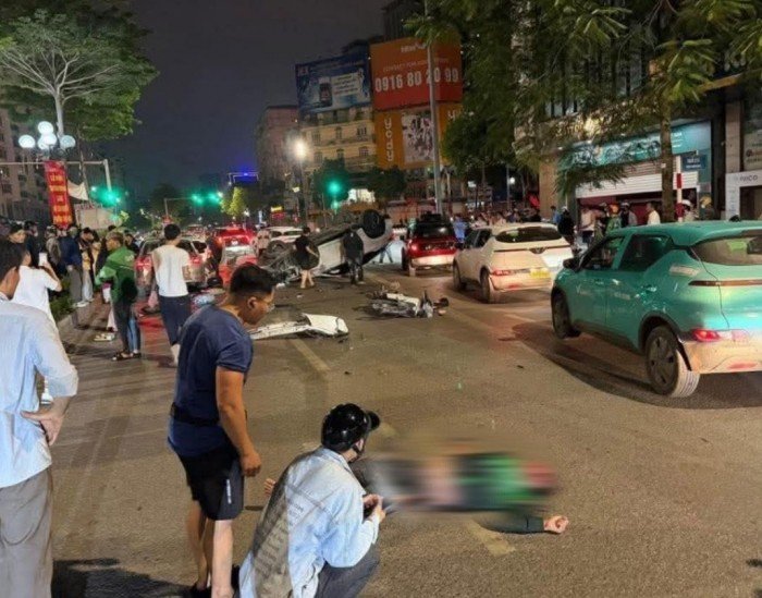 26/03/2026 06:06Hiện trường vụ tai nạn ở Cầu Giấy, Hà Nội: Xe ô tô lật ngửa nằm lăn lóc giữa đường, xe máy tan tành