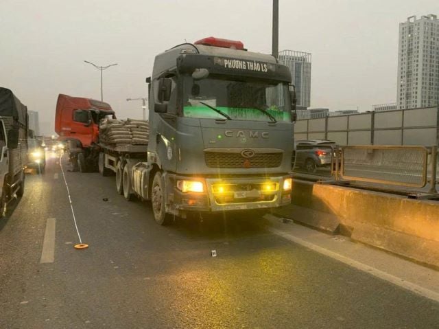 Tại hiện trường, mảnh vỡ từ hai xe đầu kéo văng tung tóe, cả hai phương tiện đều bị hư hại đáng kể. Sự cố xảy ra vào khung giờ bắt đầu cao điểm khiến giao thông trên trục đường Vành đai 3 bị ùn ứ kéo dài.