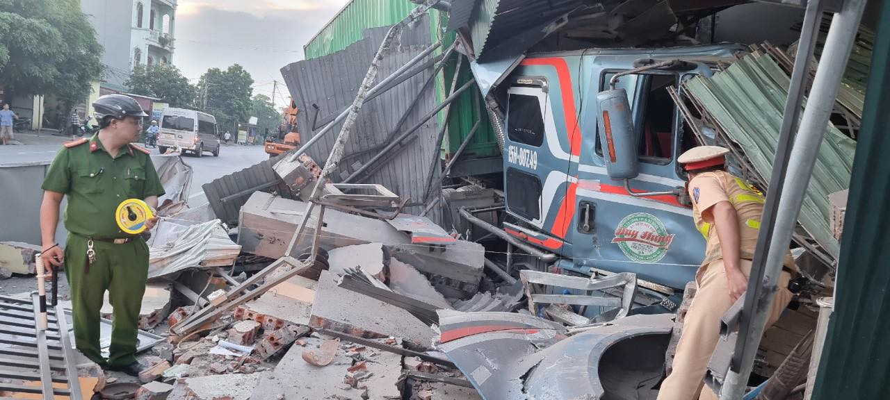 05/10/2022 03:26Hiện trường xe container đâm xuyên qua 3 nhà dân ven quốc lộ