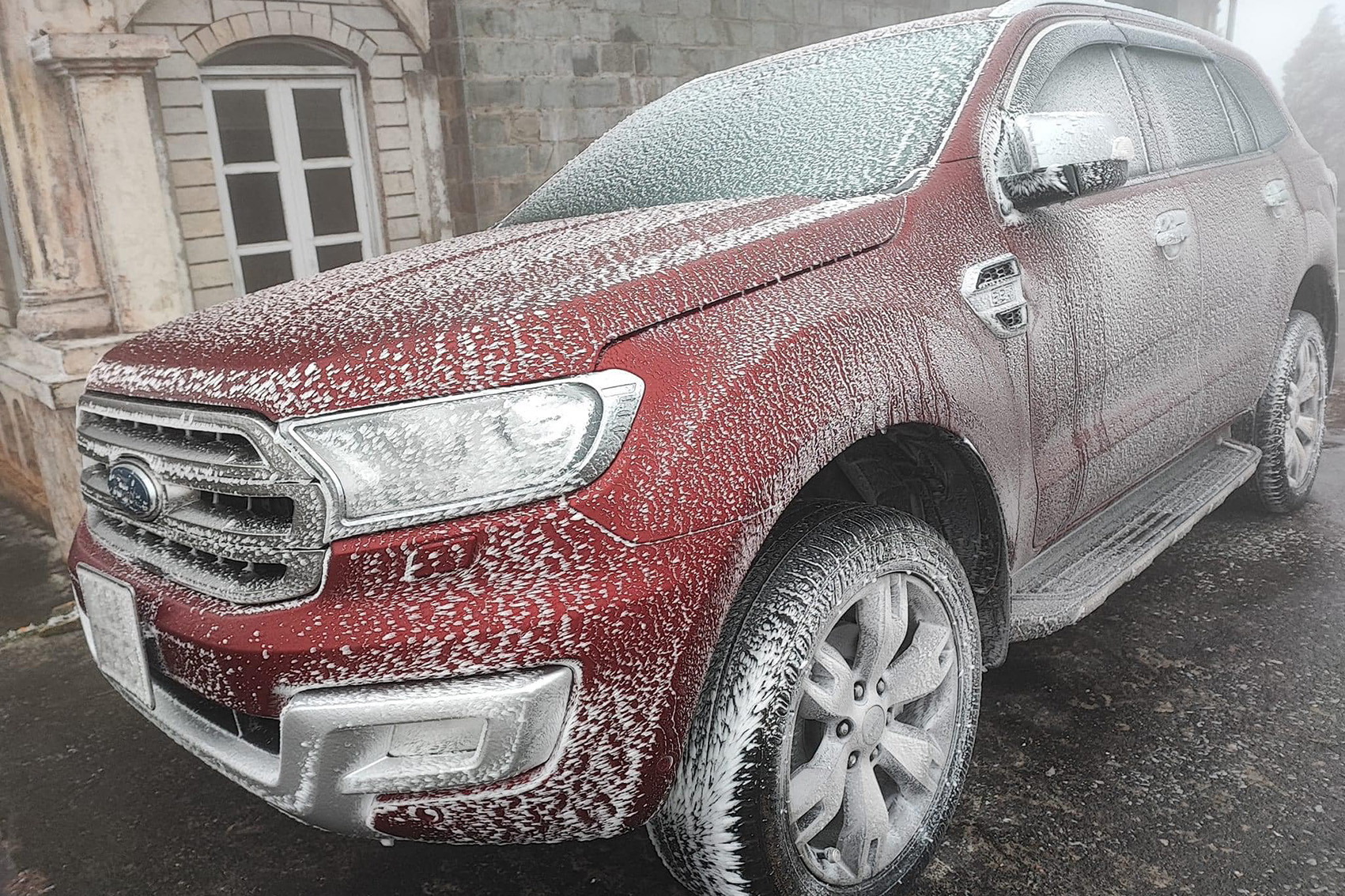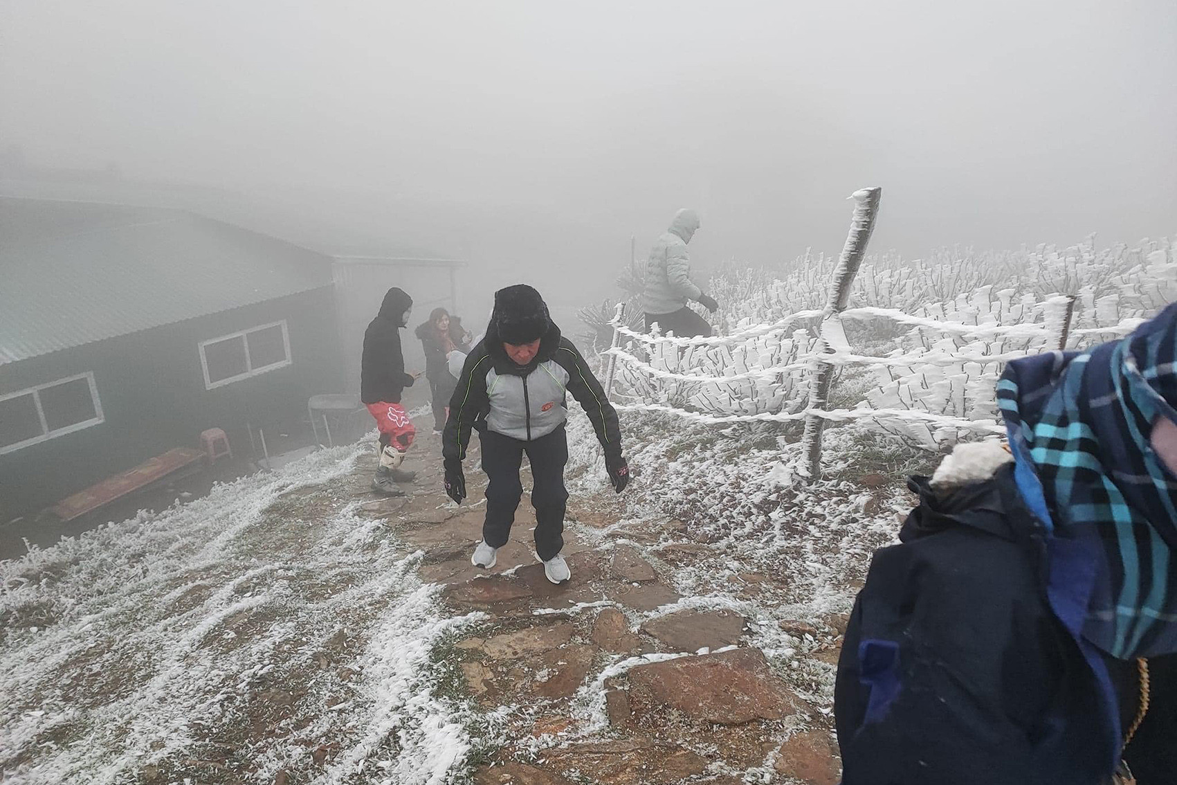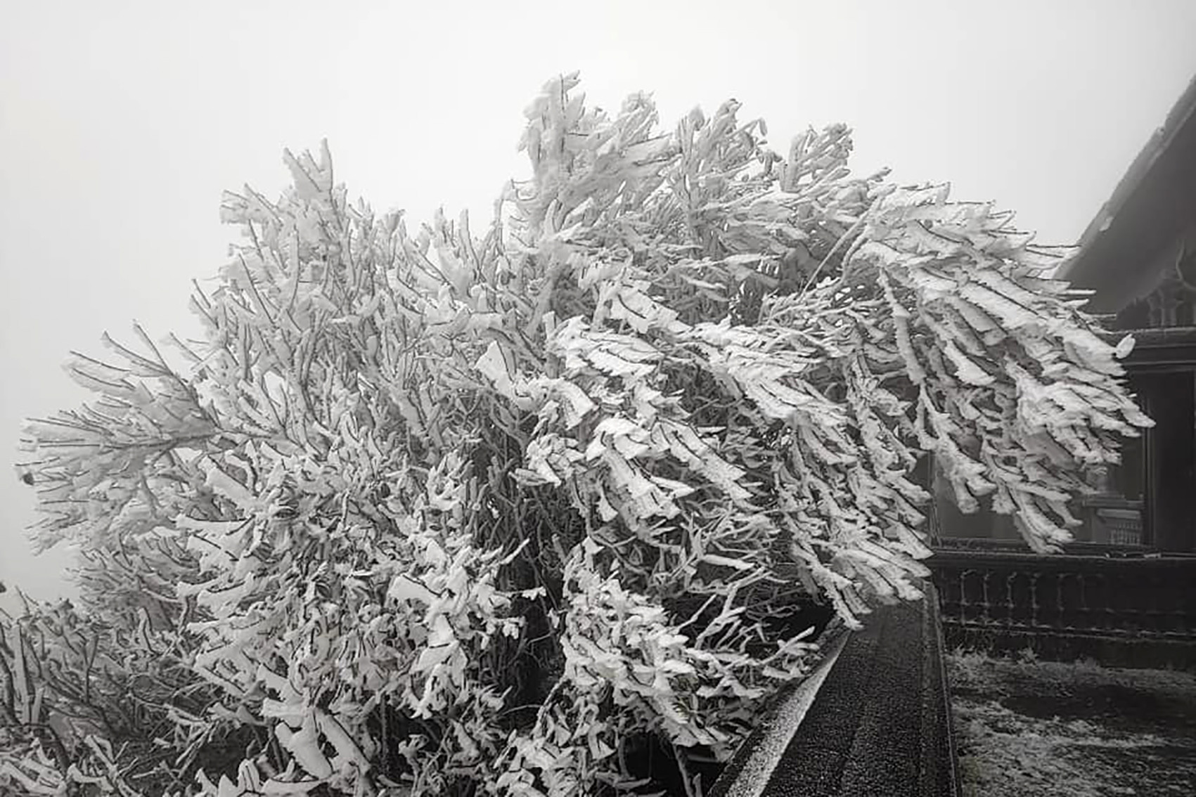 Cũng theo anh Chuyển, hiện tại ở đỉnh Mẫu Sơn băng giá đã đóng dày. Cây cối và đường đi lên đỉnh đóng lớp băng cứng và trơn, xe máy và xe ô tô của du khách cũng bị đóng băng.