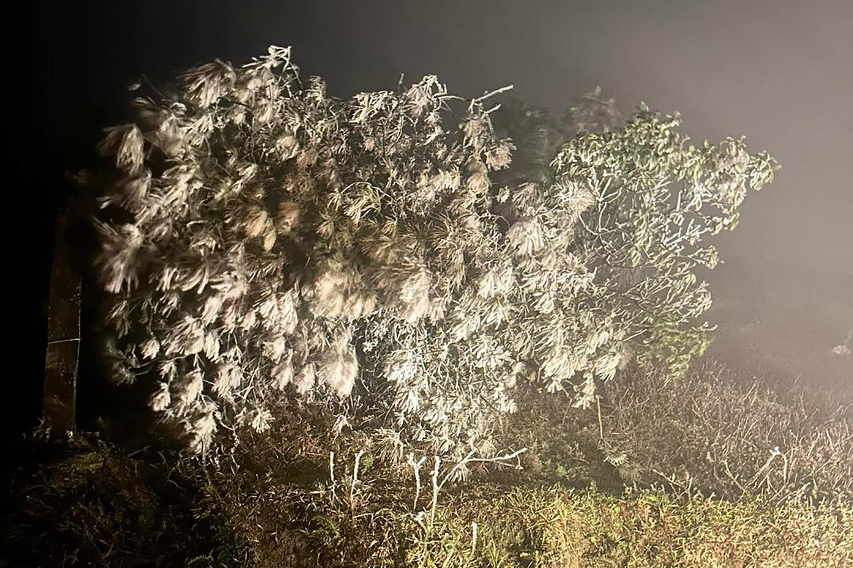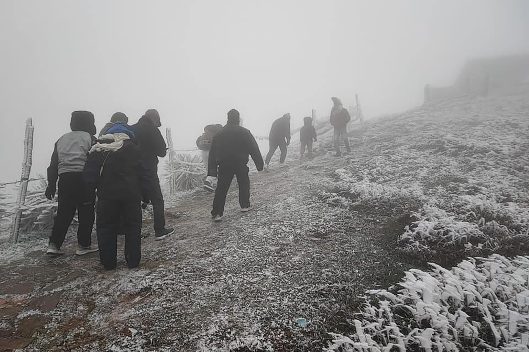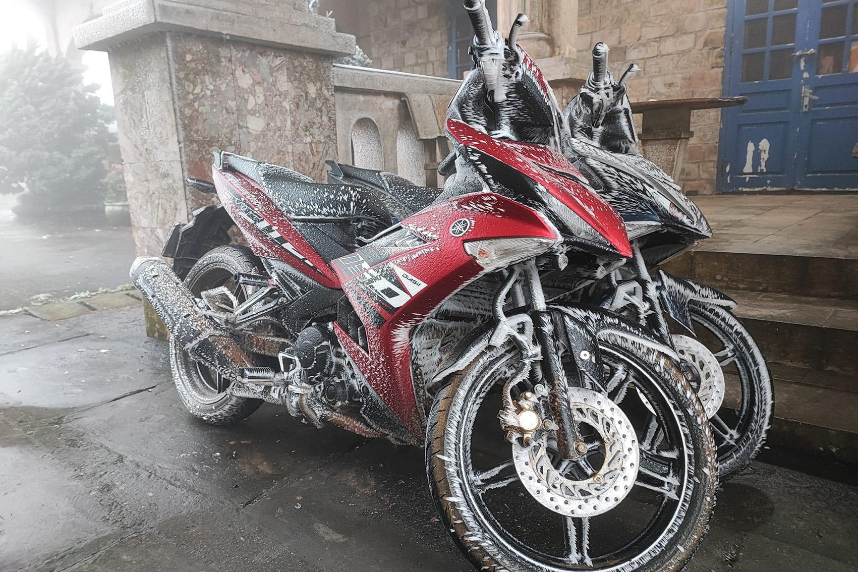 Cũng theo anh Chuyển, hiện tại ở đỉnh Mẫu Sơn băng giá đã đóng dày. Cây cối và đường đi lên đỉnh đóng lớp băng cứng và trơn, xe máy và xe ô tô của du khách cũng bị đóng băng.
