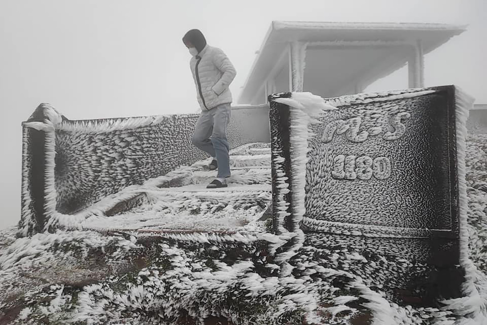 23/01/2024 17:09Hình ảnh băng giá phủ trắng đỉnh Mẫu Sơn trong tiết trời -1 độ C
