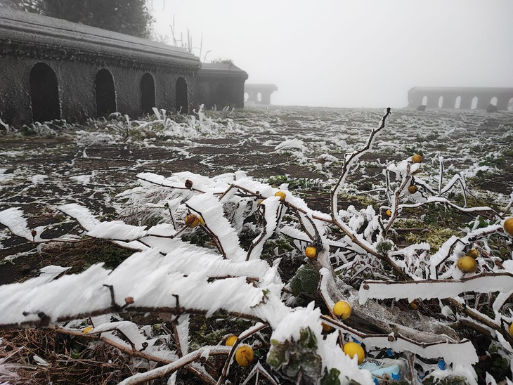 Thông tin với Tuổi Trẻ Online sáng 23/1, anh Nguyễn Minh Chuyển (cán bộ quản lý khu du lịch Mẫu Sơn) cho biết từ chiều tối qua, nhiệt độ trên đỉnh núi Mẫu Sơn (tỉnh Lạng Sơn) xuống dưới 0 độ C, băng giá bắt đầu hình thành ở khu vực đỉnh núi.