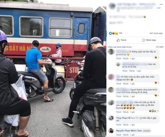 Mới đây, mạng xã hội xôn xao trước bức ảnh ghi lại cảnh cô gái đi xe máy sát đoàn tàu đang chạy thu hút sự chú ý của dân mạng: "Đúng là biết cách thu hút mọi ánh nhìn mà. Vượt rào bên kia không qua nổi rào bên này, thôi thì mình ngồi làm ấm trà, ngắm nhìn đoàn tàu đi qua thôi".