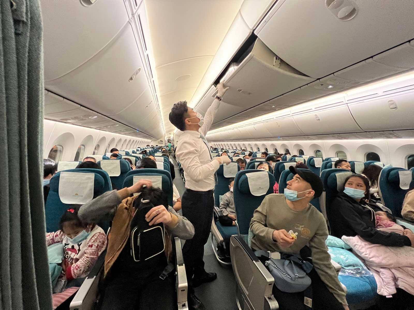 Chuyến bay do Vietnam Airlines thực hiện chở 287 bà con người Việt sơ tán từ Ukraine, nhiều hơn 4 người so với dự kiến ban đầu, trong đó có 71 cháu dưới 12 tuổi.