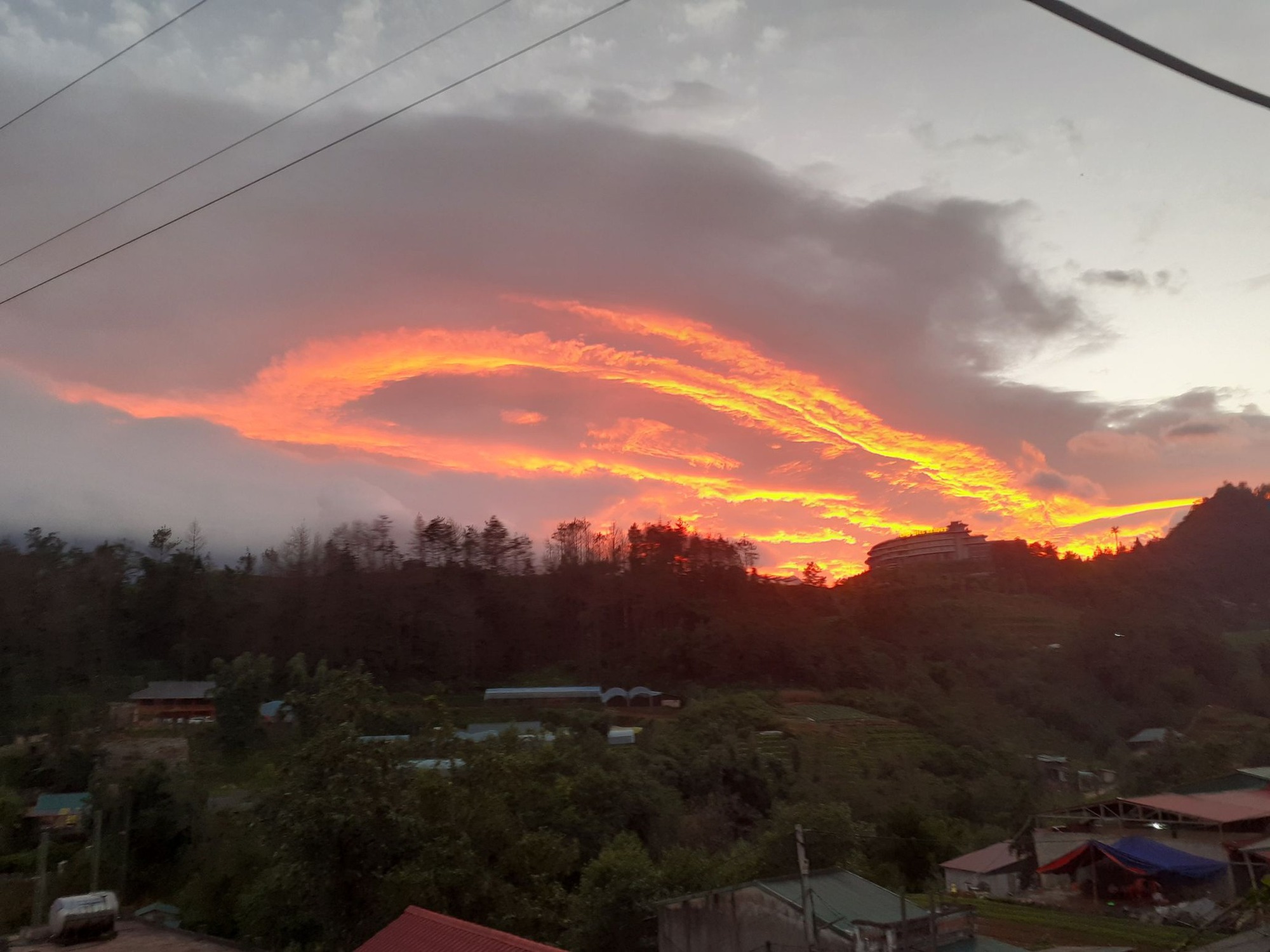Vào chiều ngày 19/9, trên bầu trời Sapa bỗng xuất hiện những quầng mây với màu sắc đỏ rực tạo nên khung cảnh kỳ vĩ tựa như trong tranh đã khiến nhiều người không khỏi trầm trồ. Các bức ảnh về khung cảnh bầu trời này đã được chia sẻ khắp các trang mạng xã hội.